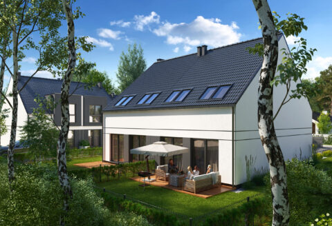 Wizualizacja Architektoniczna – Osiedle szeregowców z dachem dwuspadowym